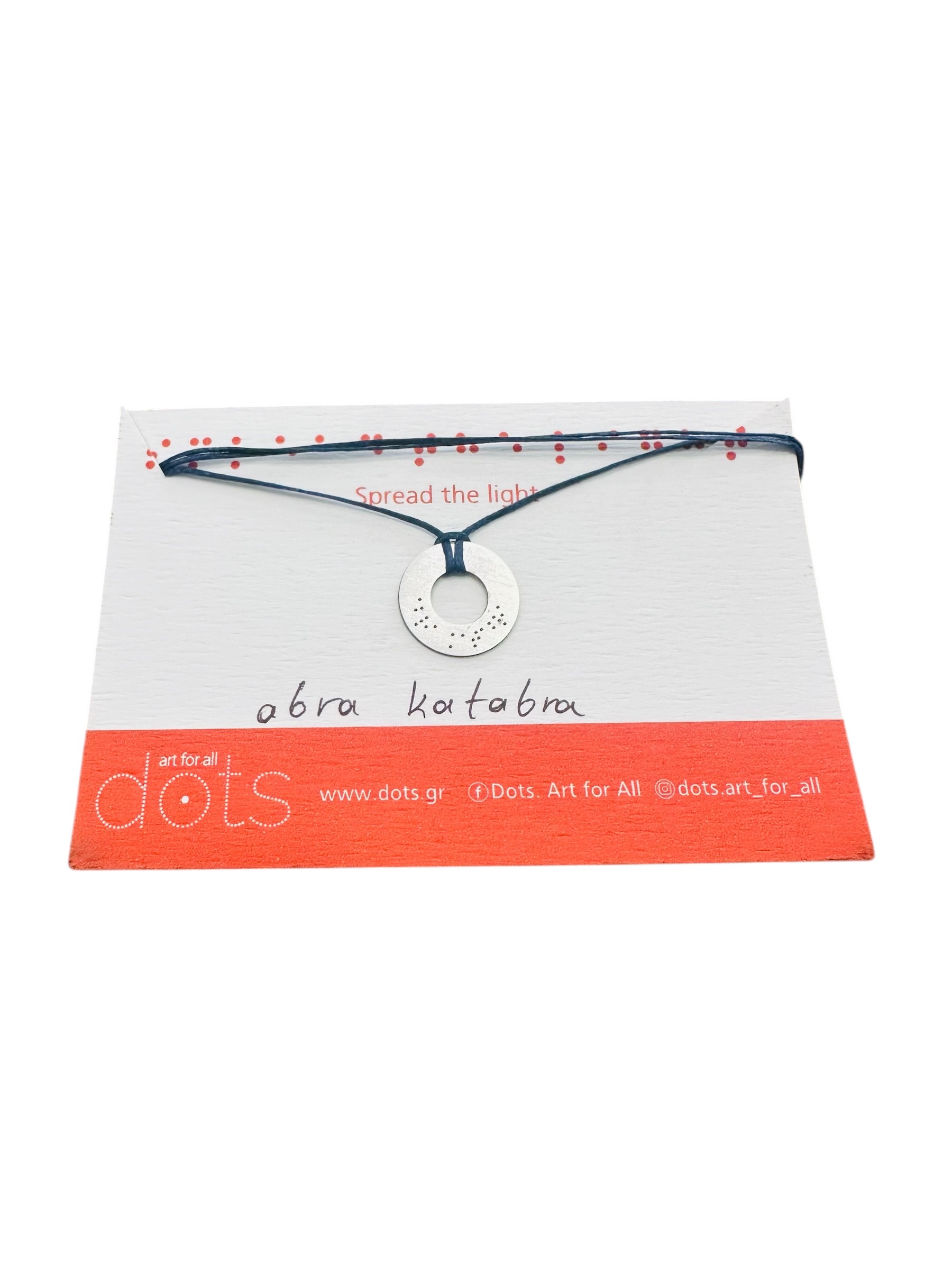 Μενταγιόν- ξόρκι με την φράση “abra katabra” χαραγμένη στην γραφή Braille