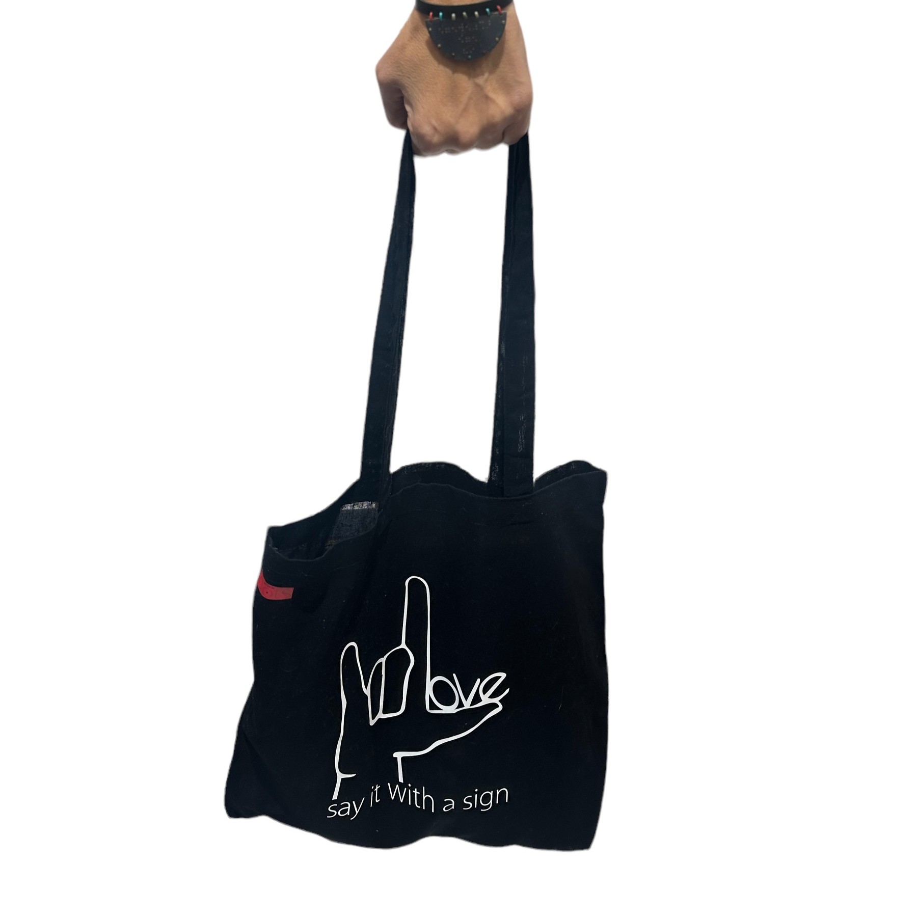 Totebag με την χειρομορφή της αγάπης στη Διεθνή Νοηματική Γλώσσα