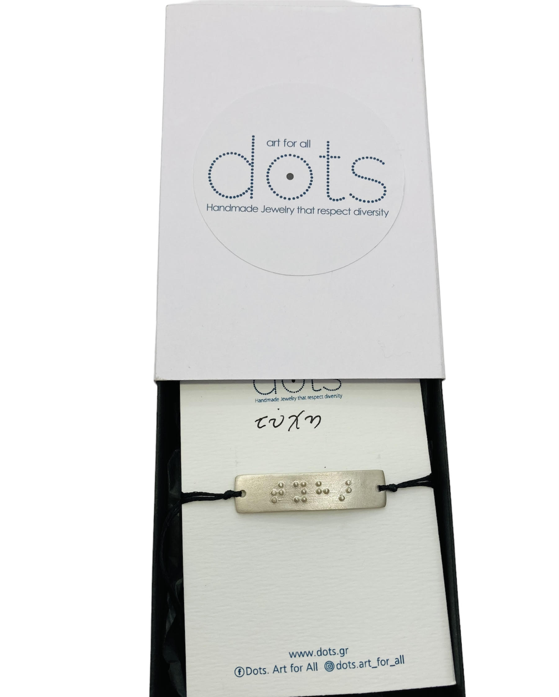 Βραχιόλι με τη λέξη ΤΥΧΗ χαραγμένη ανάγλυφα στη γραφή Braille.
