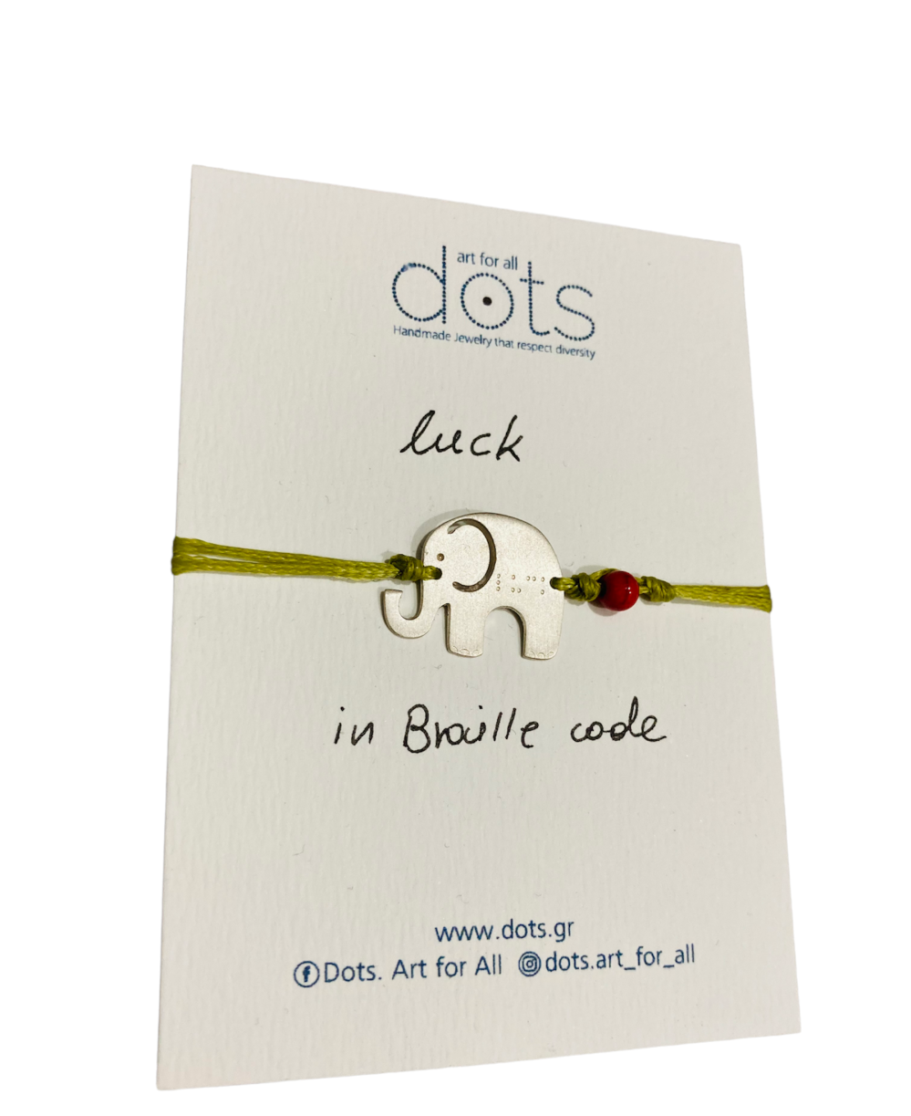 Βραχιόλι με τη λέξη LUCK χαραγμένη στη γραφή Braille.
