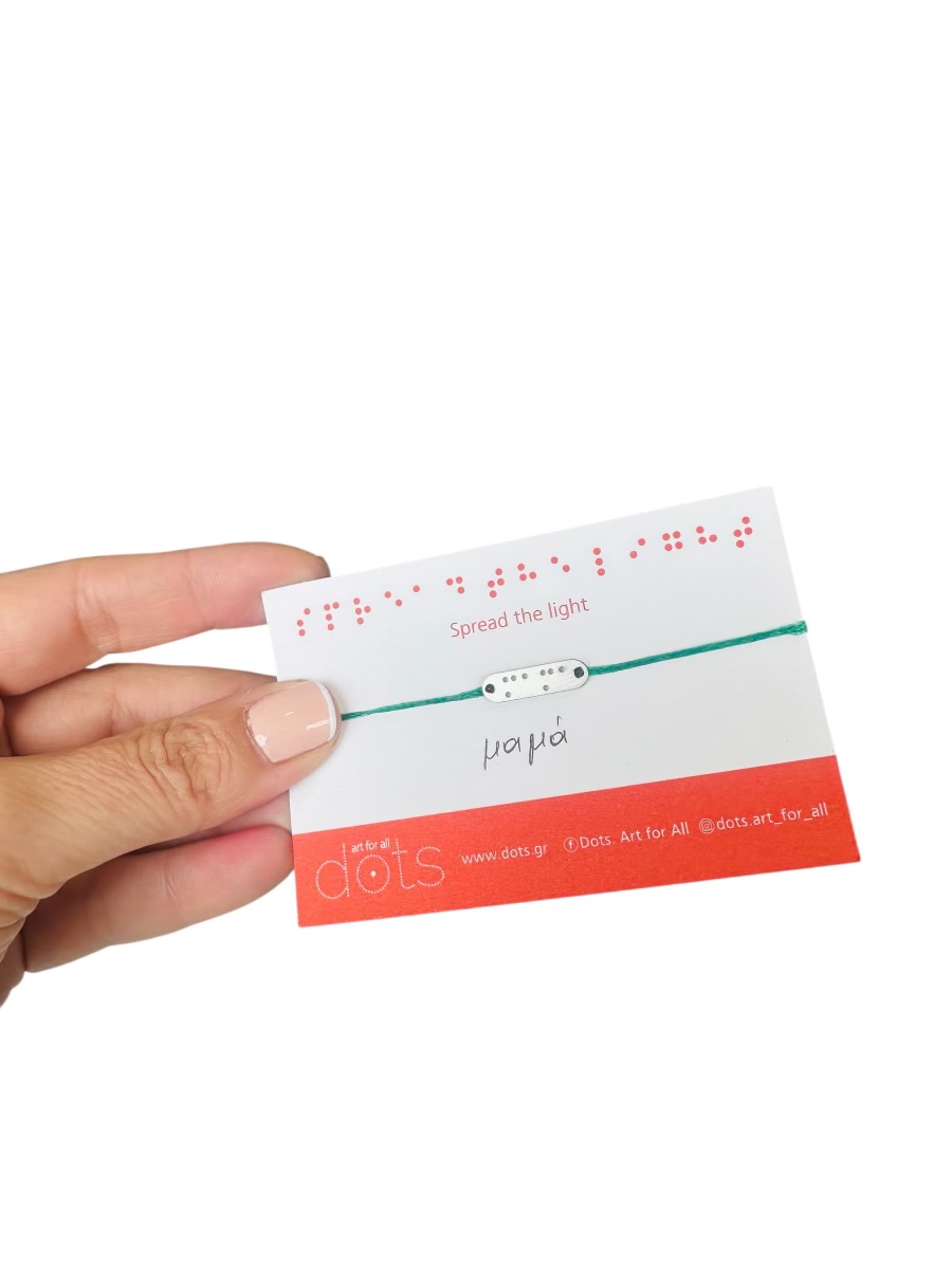 Βραχιόλι με την λέξη “μαμά” χαραγμένη στη γραφή Braille