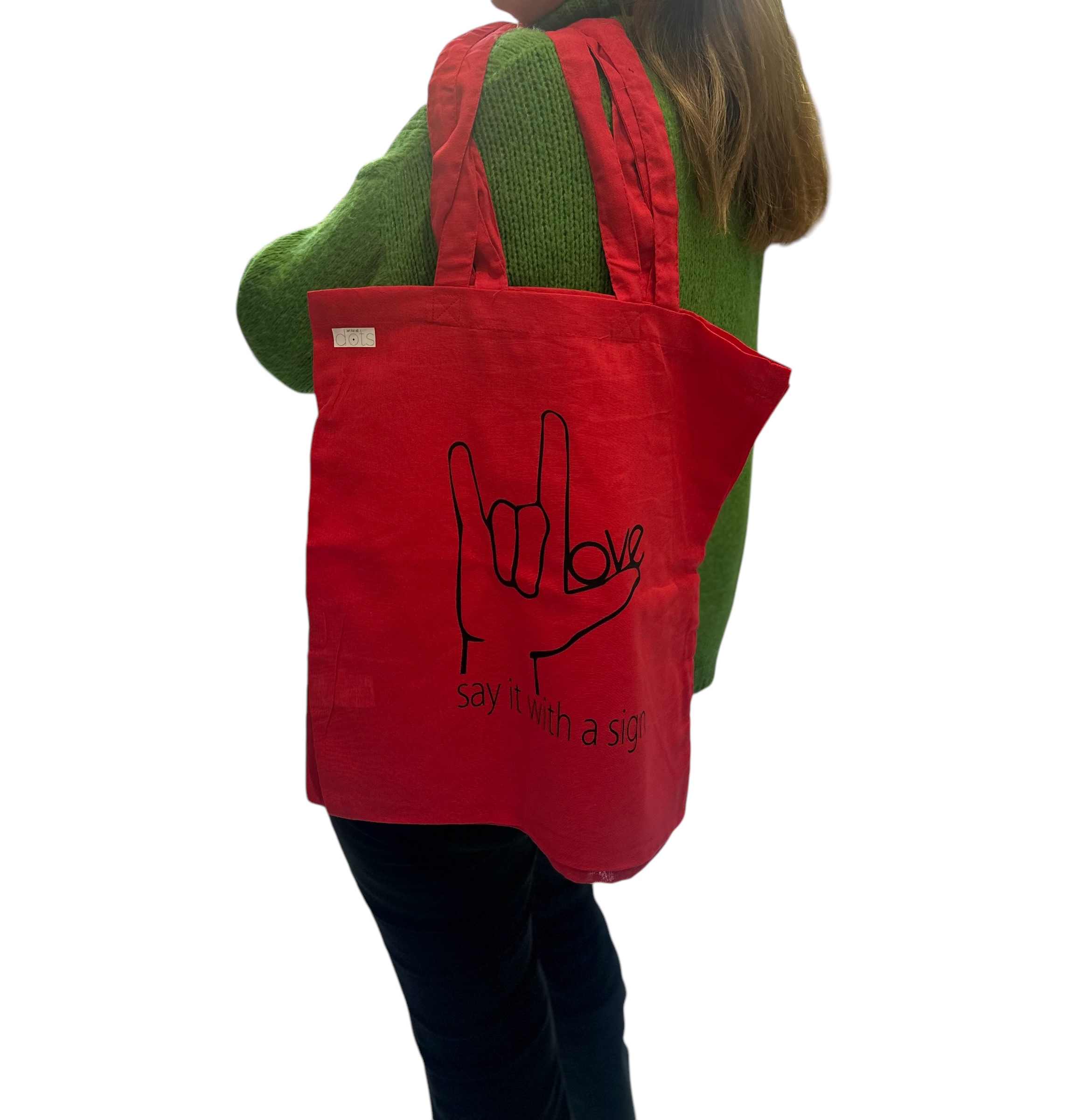 Totebag με την χειρομορφή της αγάπης στη Διεθνή Νοηματική Γλώσσα