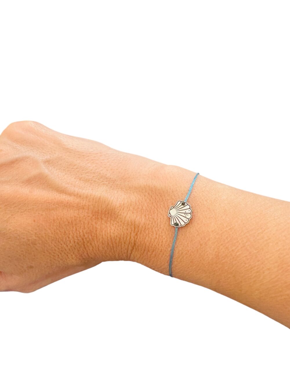 Βραχιολάκι Κοχύλι με τη λέξη Αύρα χαραγμένη με κουκκίδες στη γραφή Braille.